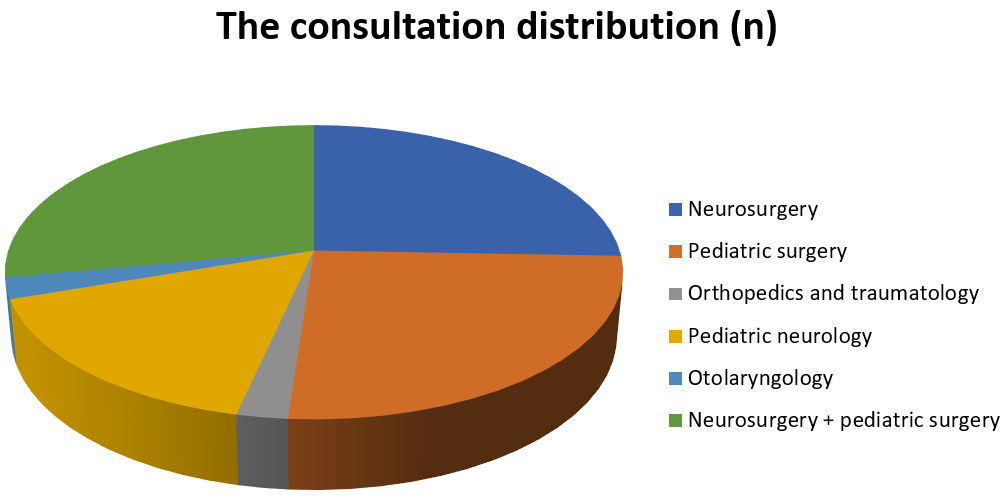 Head trauma and/or brain injury are the most common form of pediatric trauma and are the most common cause of trauma-related mortality and morbidity.16 Doğan et al. in their study of pediatric traumas found that the most common region was the head and neck region, with a rate of 41.9%. Extremity traumas were observed in 33.4% of cases.17 The present study provides support for these rates, and it was found that the rate of consultation with neurosurgeons and pediatric surgeons was higher than that of other specialists.