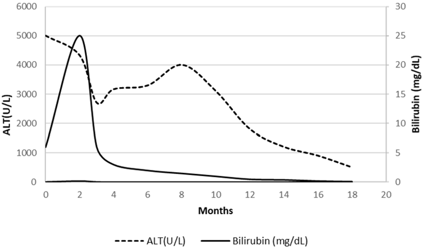 Previous studies have reported that rituximab may be effective in refractory GCH-AHA, although relapses are common.3, 4 Early administration, in combination with other immunosuppressants, may improve outcomes and reduce progression to liver failure. In the current case, prolonged and combined immunosuppressive therapy resulted in long-term survival with an uneventful follow-up of 1000 days. This is an exceptionally rare outcome, making this, to the best of our knowledge, the second known surviving case reported from Turkey.5 Notably, this patient received a total of nine doses of rituximab, exceeding the commonly reported regimens of four to six doses.3 This extended protocol was guided by persistent cholestatic liver enzyme elevations and incomplete remission.