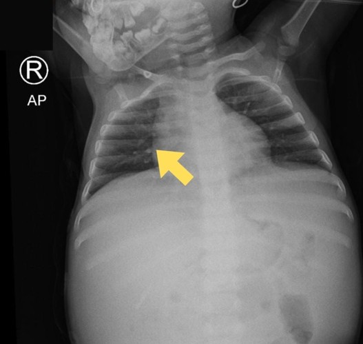 A 1-year-old girl was referred to our tertiary hospital from X Province Hospital with a primary complaint of ascites that had persisted for seven months. She also had a persistent fever and cough for three months. Significant weight loss was noted three months before admission to X Hospital. The patient’s family and close contacts had no known history of tuberculosis exposure. Her immunization was completed.